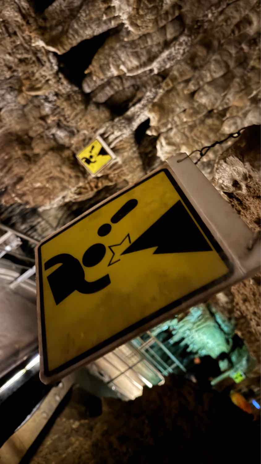 そんな非日常な空間の中で見つけた「鍾乳洞注意」の看板が気に入り、思わず写真を撮ってしまいました。